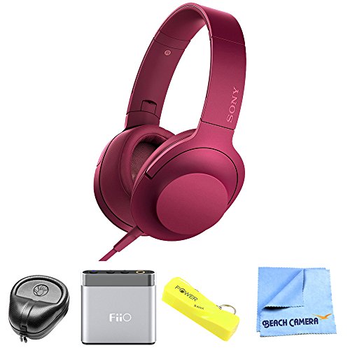 Sony MDR100AAP h.Ear on Premium Hi-Res On-Ear Stereo Headphones - Bordeaux Pink (MDR100AAP/P) with HardBody Headphone Case, A1 Headphone Amplifier, 2600mAh Port. Keychain Power Bank & Cleaning Cloth