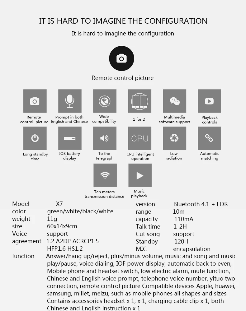u0026nbsp;X7 Bluetooth 4.1 Sport Earphone Hand Free Wireless Bluetooth Headset Earphone Sports In-ear Bluetooth Earphone