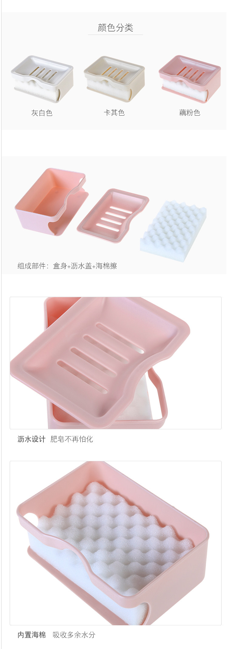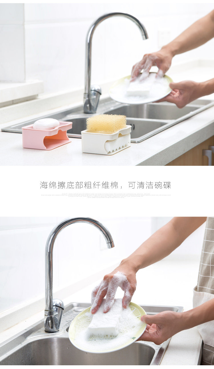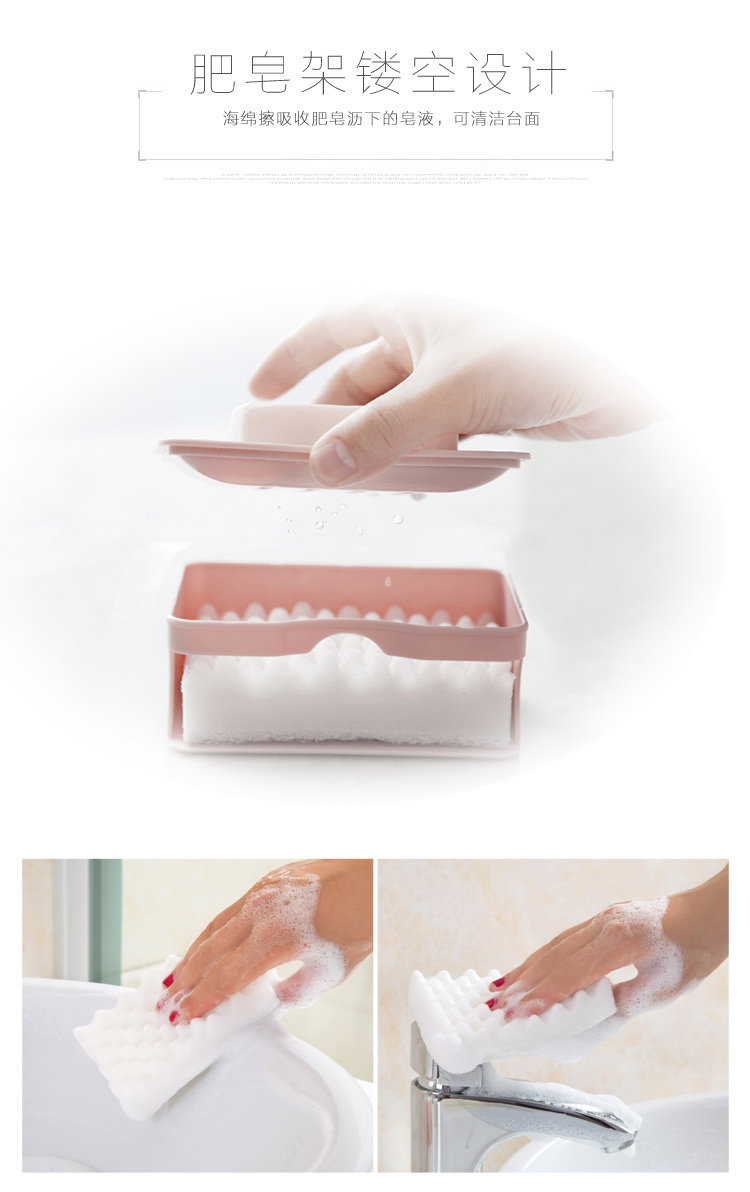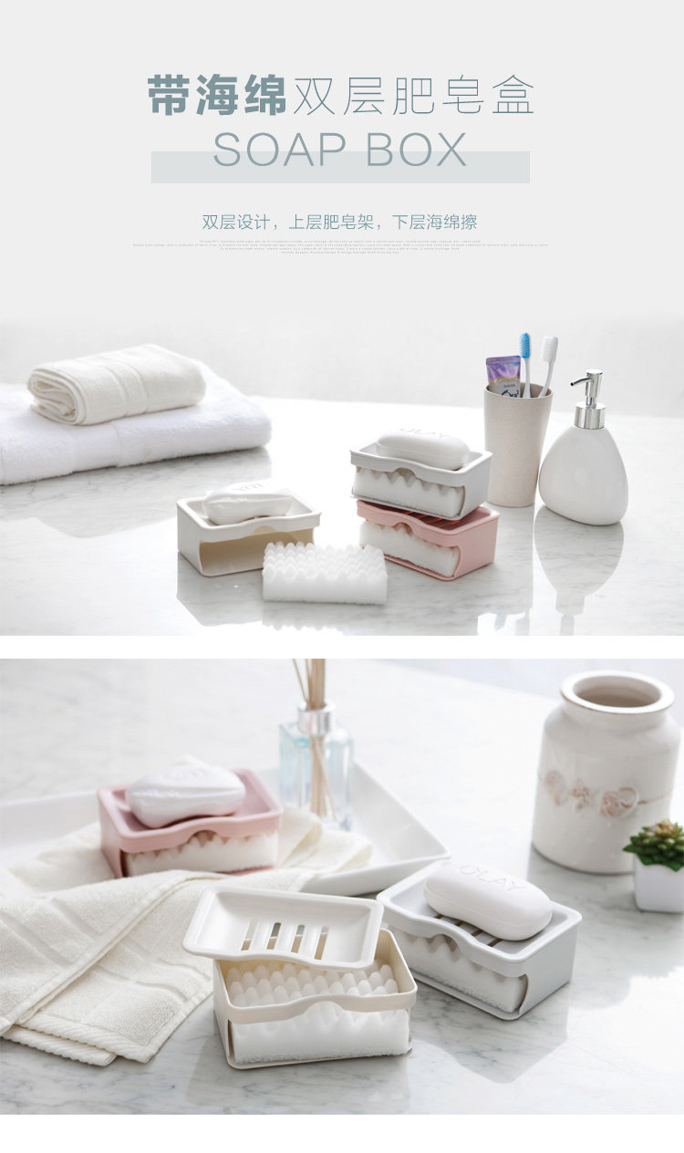 上层肥皂架,沥干多余水分,保持肥皂干燥;下层海绵擦,吸收沥下皂液,清洁脏污;