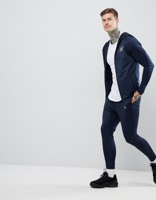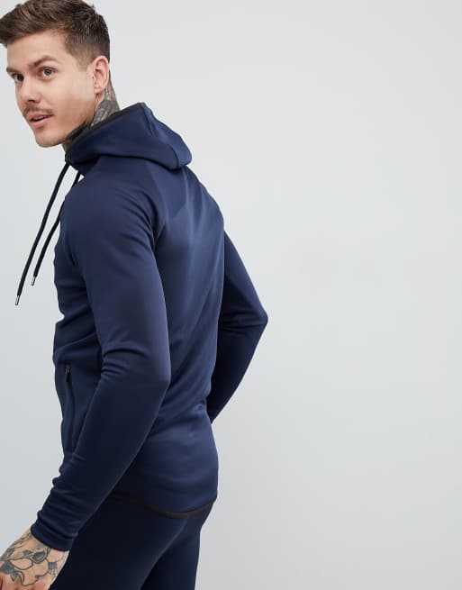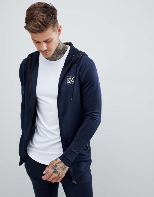 SikSilk zip through hoodie in navy