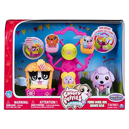 It’s time for the theme park! Give your stumbling, fumbling, tumbling Chubby Puppies a ride on the Ferris Wheel! Each set comes with a sweet Purple Poodle and Baby! The fabulous Ferris Wheel can fit up to three Chubby Puppy babies (not included). Pile them in and turn the handle to rotate the Ferris Wheel in a full circle. While the babies are having fun on the ride, Purple Poodle can get to work behind the popcorn stand. The puppy will automatically power the popcorn stand! For theme park fun with Chubby Puppies, take home the Ferris Wheel set!Feature