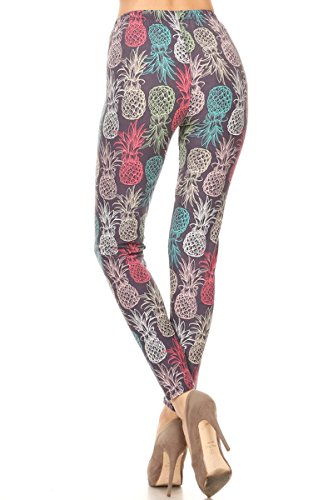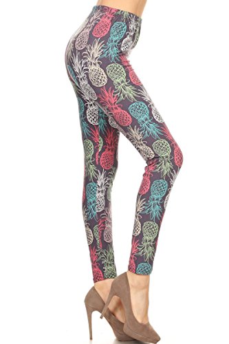 Leggings Depot reg/Plus Women's Best Christmas Holiday Printed Leggings BAT2 (Extra Plus, Pineapple Chalkart)