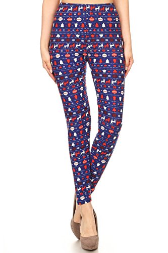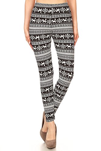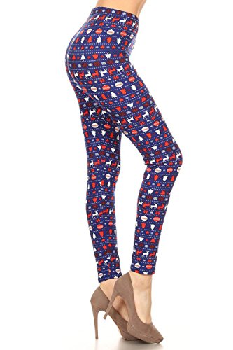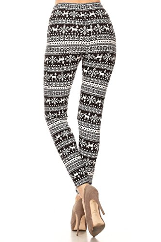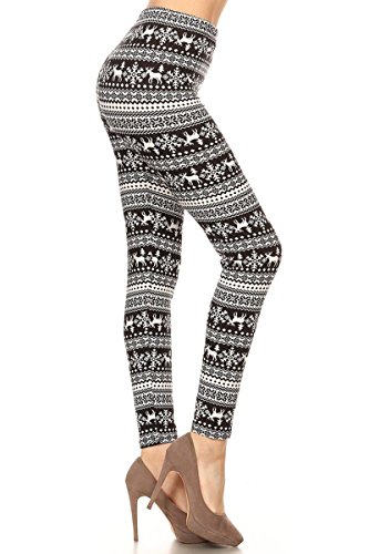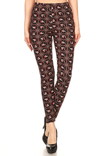 Leggings Depot Women's Seasonal Quality Printed Leggings for Fall/Winter Batch2 (Regular (Size 0-12), Reindeer Romance)