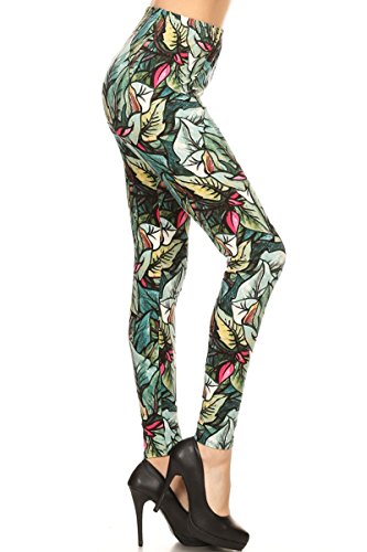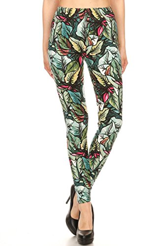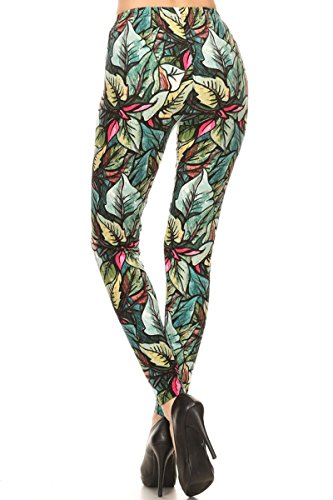 Leggings Depot Ultra Soft Women's Popular Best REGULAR and PLUS Printed Fashion Leggings (One Size 0-12), Luscious Leaves)