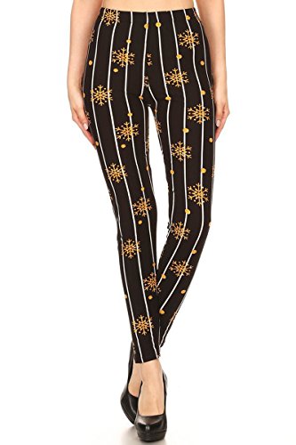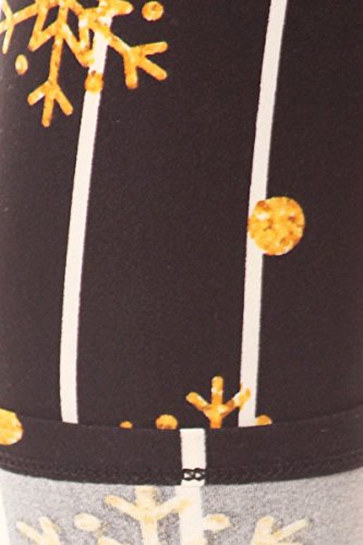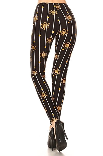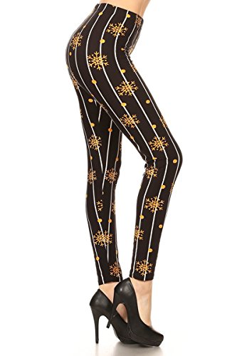 Leggings Depot Women's Seasonal Quality Printed Leggings for Fall/Winter Batch2 (Regular (Size 0-12), Golden Snowflakes)
