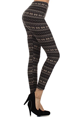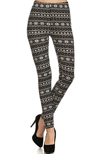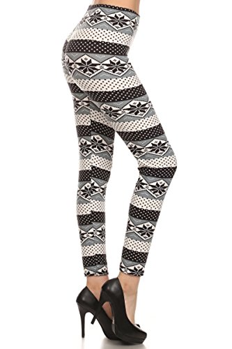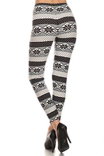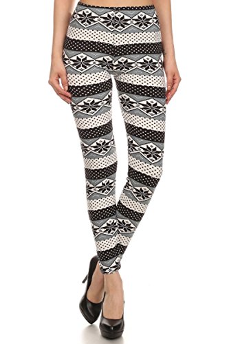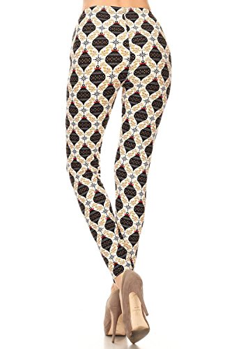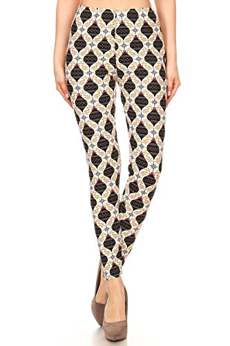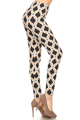 Leggings Depot Women's Seasonal Quality Printed Leggings for Fall/Winter Batch2 (Regular (Size 0-12), Black Ornaments)