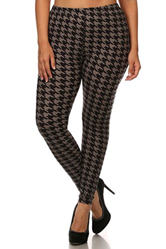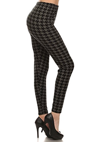 Leggings Depot reg/Plus Women's Best Christmas Holiday Printed Leggings BAT2 (Plus (Size 12-24), Charcoal Houndstooth)
