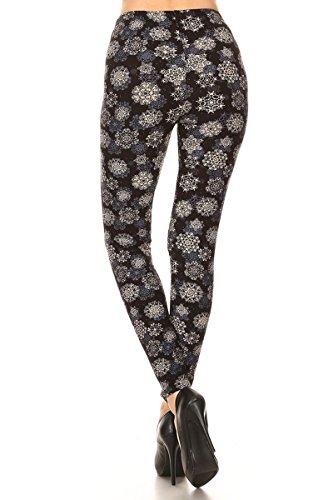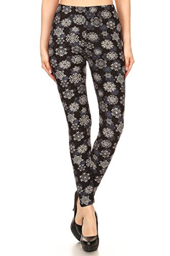 Leggings Depot Women's Seasonal Quality Printed Leggings for Fall/Winter Batch2 (Regular (Size 0-12), Snowflake Crystals)