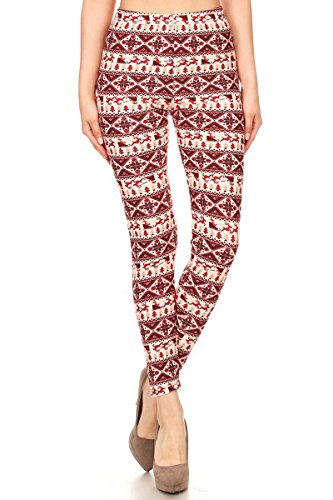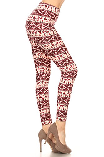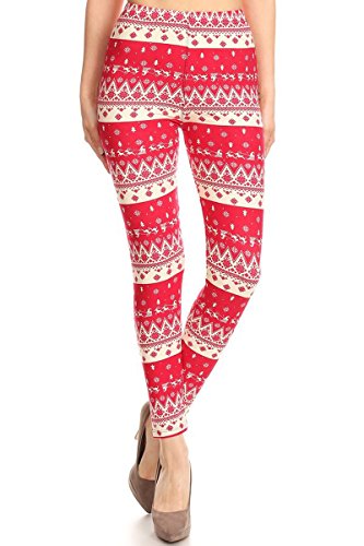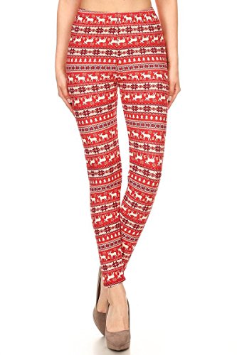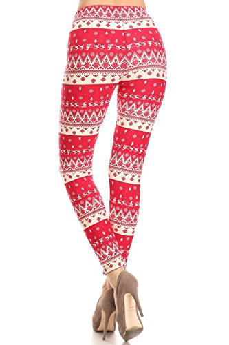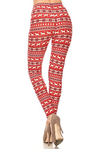 Leggings Depot Women's Seasonal Quality Printed Leggings for Fall/Winter Batch2 (Regular (Size 0-12), Red Reindeer)