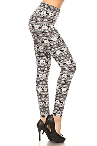 Leggings Depot Women's Seasonal Quality Printed Leggings for Fall/Winter Batch2 (Regular (Size 0-12), White Reindeer)
