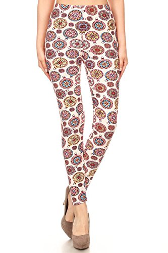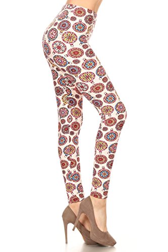 Leggings Depot Women's Seasonal Quality Printed Leggings for Fall/Winter Batch2 (Regular (Size 0-12), Floral Ornaments)