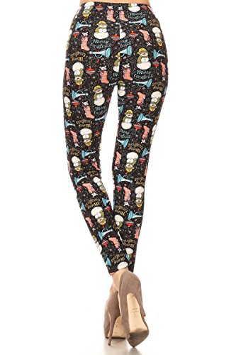 Leggings Depot Women's Seasonal Quality Printed Leggings for Fall/Winter Batch2 (Regular (Size 0-12), Black December)