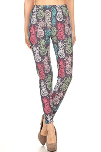 Leggings Depot reg/Plus Women's Best Christmas Holiday Printed Leggings BAT2 (One Size (Size 0-12), Pineapple Chalkart)