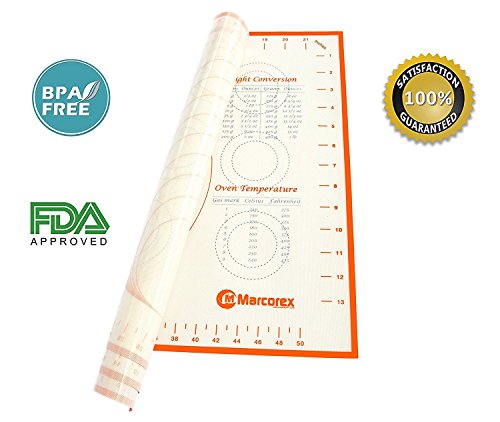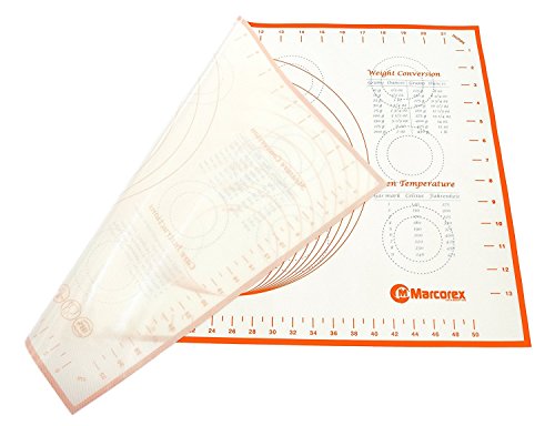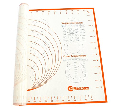 BAKERS DREAM PASTRY MAT: Our specially designed Marcorex silicone pastry mat is a multi-purpose silicone pastry mat with measurements and conversions info, providing an excellent baking surface. Making a pie or pizza crust, pastries or rolling out cookie dough it's so much easier on our latest mat design.