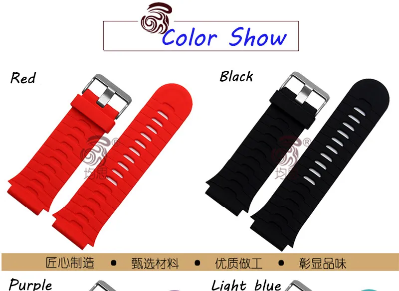 상품 내용 우리의 높은 품질의 손목 제조. 우리의 회사 브랜드 이름 UYOUNG 소재 실리콘 커넥터 특수 인터페이스 25 미리메터 걸쇠 형 미세 스틸 버클 Adaptiaton 가민 920XT 밴드 폭 33*25 미리메터 밴드 길이 120 + 80 미리메터 밴드 두께 3 미리메터 밴드 색상그림 로고 로고 우리는 패키지 1 개 * 손목 1 개 * 도구 및 2 개 * 핀 포장 상세