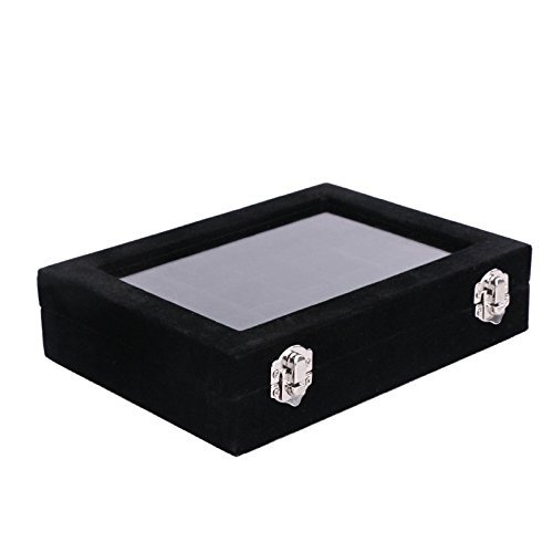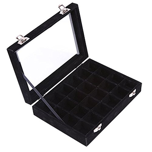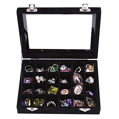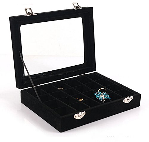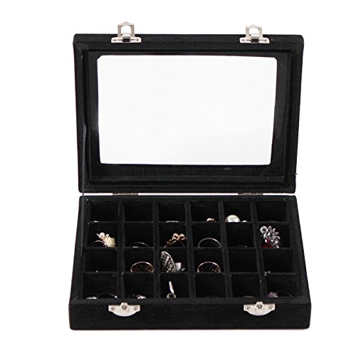 HyFanStr Jewelry Box Ring Storage Case Necklace Tray Earring Organizer Display 24 Compartments Black