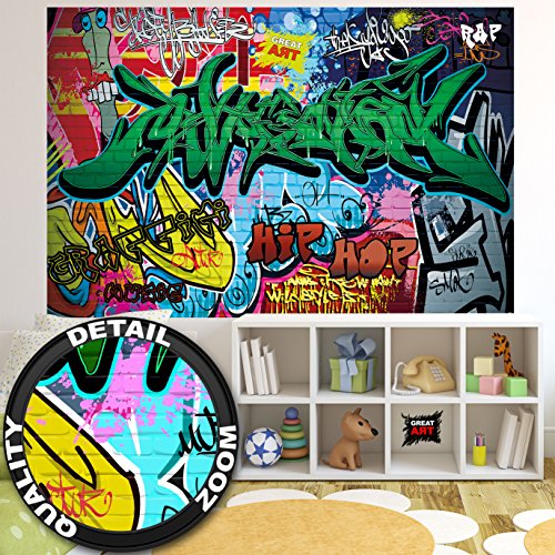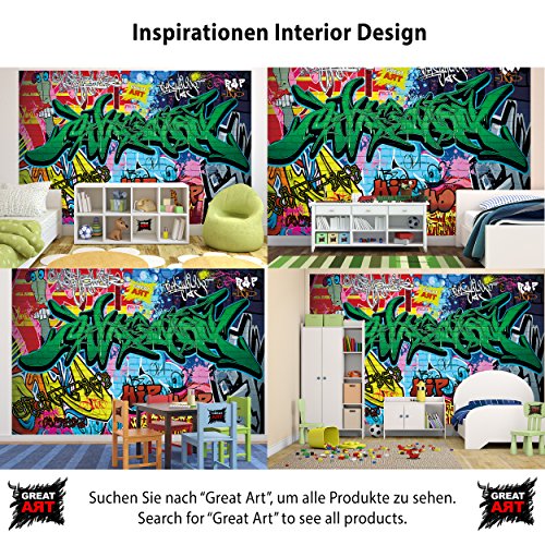 -. Binding : Kitchen -. Brand : Great Art -. Feature : Only for a short amount of time! Get a New York Skyline poster (48 Inch x 17 Inch) with this order for free! / Controlled manufacture by great-art®, designer wallpapers made in Germany. Securely shipped with sturdy packaging - worldwide shipping. / Latest P.R.Inting technique, varnishing the surface: The P.R.Int is of a unique, high quality and rich in detail. Very sturdy P.R.Int can be used everywhere due to thicker paper. It can be wallpapered on every base. / Can be wallpapered over existing wallpaper. Picture consists of 1 part, sealed and varnished. Contains instructions - great for every occasion! / Can be used as poster or photo wallpaper! It is very easy to mount with tape or with thumbtacks as a poster. -. Label : GREAT ART -. Manufacturer : GREAT ART -. ProductGroup : Home -. ProductTypeName : HOME -. Publisher : GREAT ART -. Studio : GREAT ART -. Title : Graffiti photo wallpaper street art graffiti wallpaper street style mural Great Art