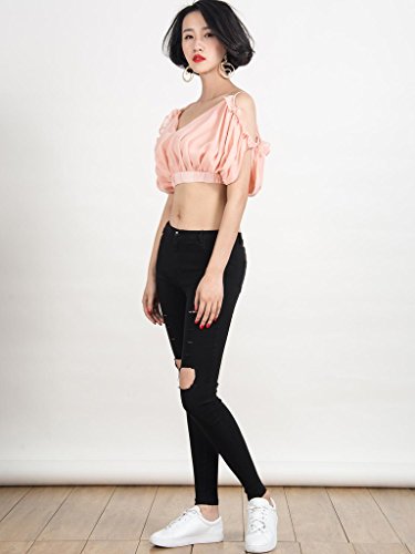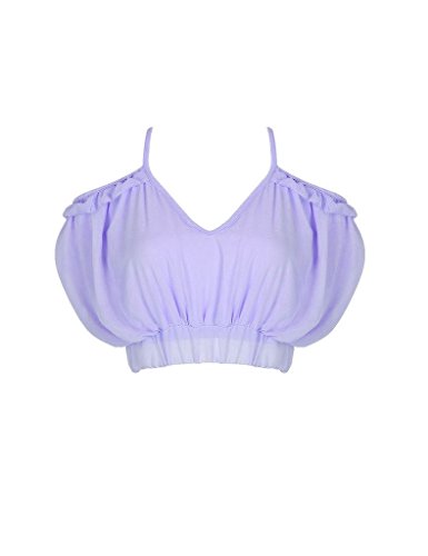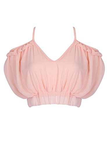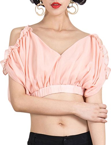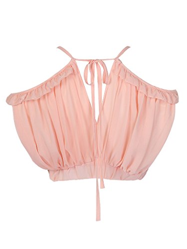 (PERSUN)/Women/Outerwear/DIRECT FROM USA/Persun Women's Chiffon V Neck Front Lace up Back Spaghetti s trap Ruffle Crop Top