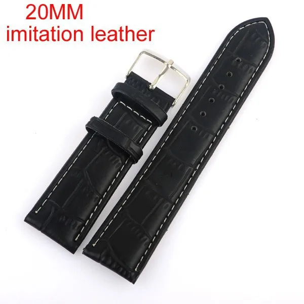 높은 품질 1 개 블랙 20 미리메터 모조 가죽 손목 스틸 버클. 방수 스트랩, 스포츠 시계 밴드
