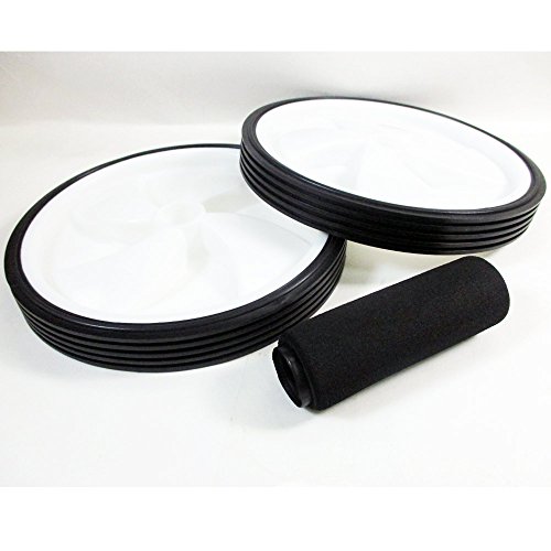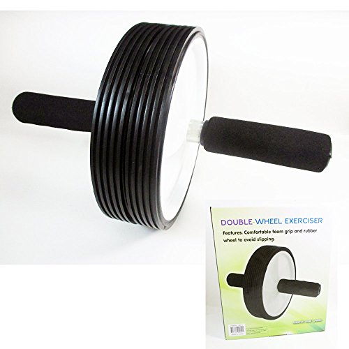 This double wheel exerciser measures: 7 3/16" x 4 3/4" strengthen and tone abs, shoulder, arms and back. Two non skid wheels for added stability. The unit teams up a pair of nonskid wheels and two easy grip handles. To use, simply get on all fours, grab hold of the handles, and glide the wheels back and forth across the floor. At various points during the exercise, you'll work every major upper body muscle group as your torso adjusts to the movements. You do not have to spend a lot of time using the roller, a few minutes a day will strengthen your core.