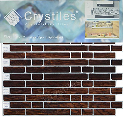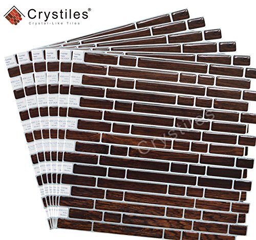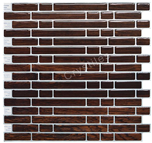 Crystiles Peel and Stick Self-Adhesive DIY Backsplash Stick-on Vinyl Wall Tiles for Kitchen and Bathroom Décor Projects, Wood Style, Item# 91010826, 10” X 10” Each, 6 Sheets Pack