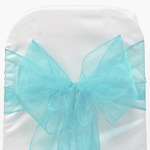 ATCG 25pcs Beautiful Organza Chair Cover Ribbon Sash for Wedding & Banquet Decor (AQUA BLUE)