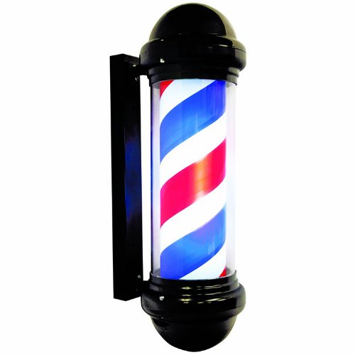 This is a brand new 28" barber pole. Give your shop a bit an old classic look. This old-fashioned barber shop pole spins and lights up to attract customers. Comes with a steel base for mounting on a wall and hardware.