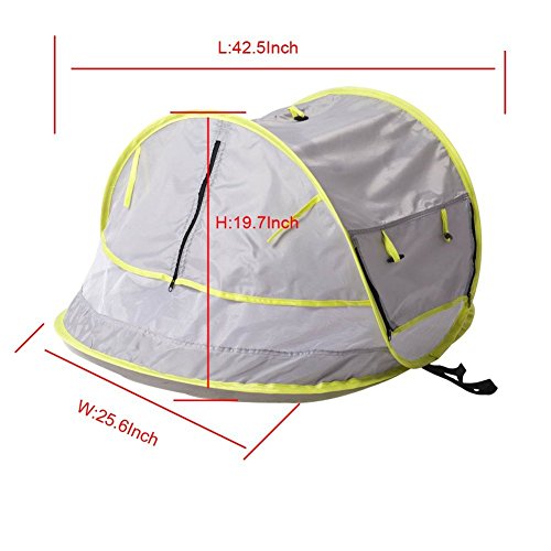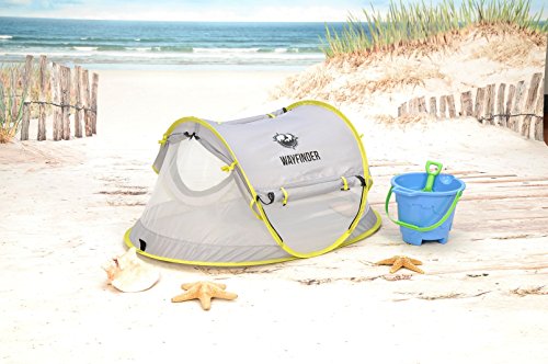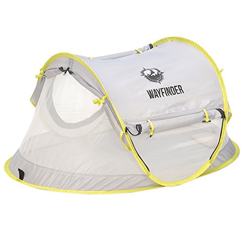 Studio : Yangcheng Breda Sports Co., ltd Publisher : Yangcheng Breda Sports Co., ltd Binding : Baby Product Product Description WayFinder provides a simple to assemble tent that is fun, quick, and easy to erect. It also serves as protection against the elements. Which allows it to be used during any season, at festivals, sporting events, beach and campgrounds, local parks, or just some leisurely fun in the backyard. It's huge main door can be held up with zip ties while the mosquito net remains zipped to shield your baby against annoying insects, allowing clear visibility, and provides excess air ventilation. Whether visiting grandparents or godparents it can be a great temporary shelter. How does it work... The WayFinder Pop Up Tent has an internal pole system. Once the tent is taken out of it's tote, this internal pole system is designed to "pop open" itself. This design feature means there is no need to insert poles like a traditional tent. We include a set of pegs to increase the stability for more severe weather conditions. WayFinder is great choice!!! ...P.S. Congrats on your baby! 0