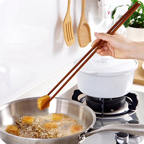 Donxote Wooden Noodles Kitchen Cooking Frying Chopsticks 16.5 Inches Brown Extra Long Set of 2 Pairs