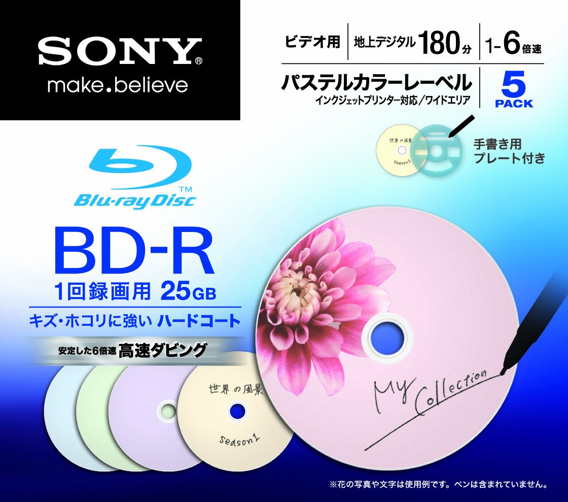 Sony Blu-ray Disc | BD-R 25GB 6x Pastel-colored Printable 5 Pack (Japanese Import)