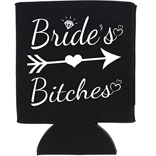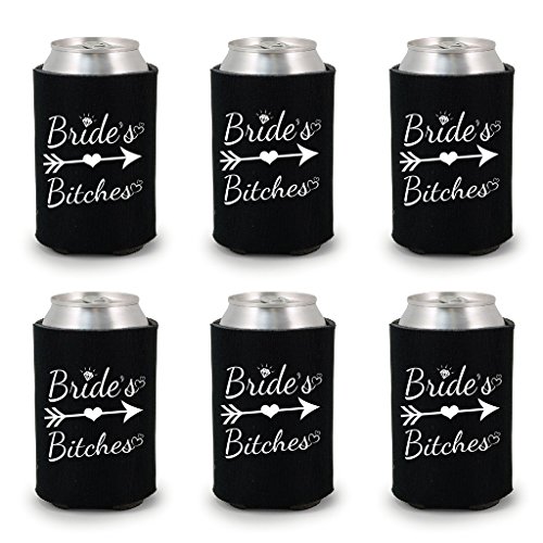 Shop4Ever Bride and Bride's Bitches Can Coolie Wedding Drink Coolers Coolies Black - 6 Pack