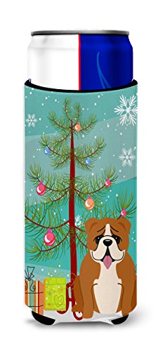 Caroline's Treasures BB4245MUK Merry Christmas Tree English Bulldog Red White Michelob Ultra Hugger for Slim Cans, Multicolor