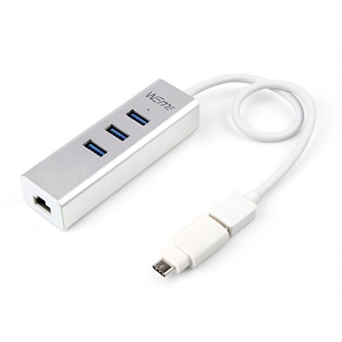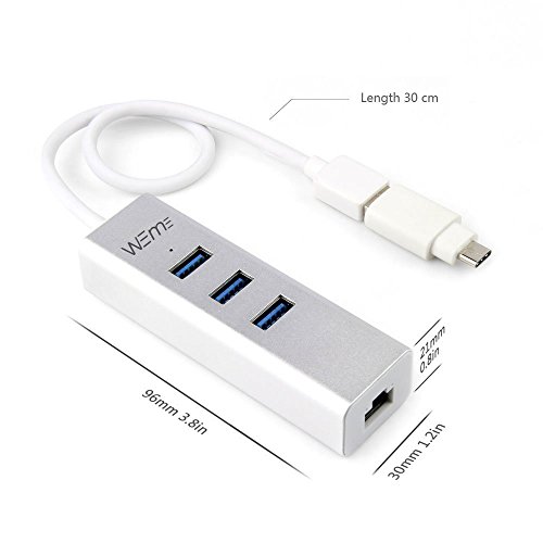 WEme 2-in-1 USB-C to 3 Ports USB 3.0 Hub with Gigabit Ethernet Adapter and LAN Wired Network Converter for Type-C Devices New Macbook 2016, ChromeBook Pixel (Unibody Aluminum)