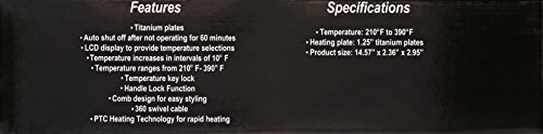 • 3 functions: Hair Straightener Flat iron, Curling Iron & Hot Air Brush
