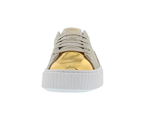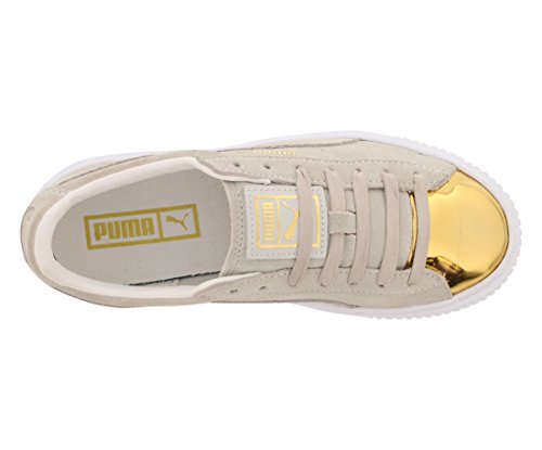 PUMA Women's Suede Platform Gold Fashion Sneaker, Gold-Star White-Puma, 8 M US