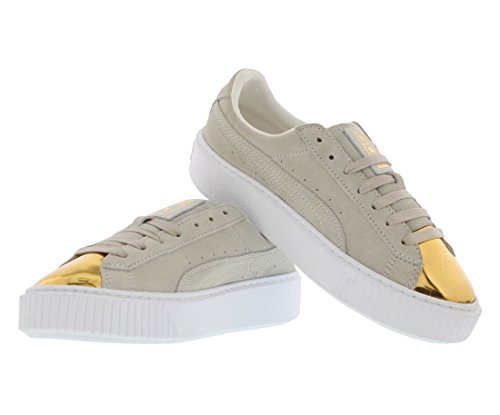 PUMA Women's Suede Platform Gold Fashion Sneaker, Gold-Star White-Puma, 8.5 M US