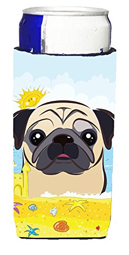 Caroline's Treasures BB2130MUK "Fawn Pug Summer Beach Michelob Ultra Koozies for Slim Cans, Multicolor
