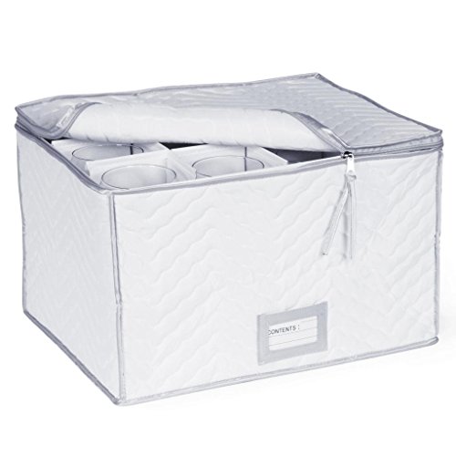 STEMWARE STORAGE CHEST -DELUXE QUILTED MICROFIBER ( 15.5" X 12.5 X 10") - WHITE W/SILVER BORDER