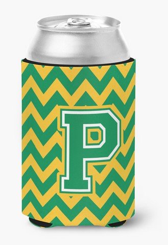 Caroline's Treasures CJ1059-PCC Letter P Chevron Green and Gold Can or Bottle Hugger, Multicolor