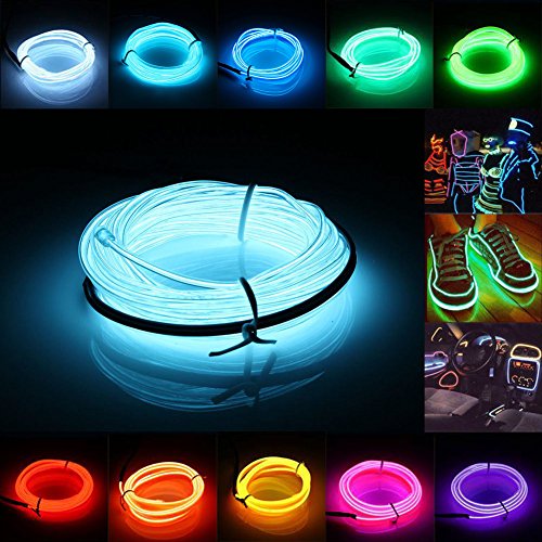 Cefrank 10ft 3m Neon Light El Wire with Battery Pack Neon Glowing Strobing Electroluminescent Wire (Aqua)