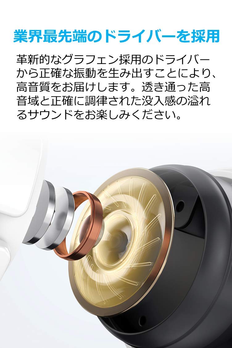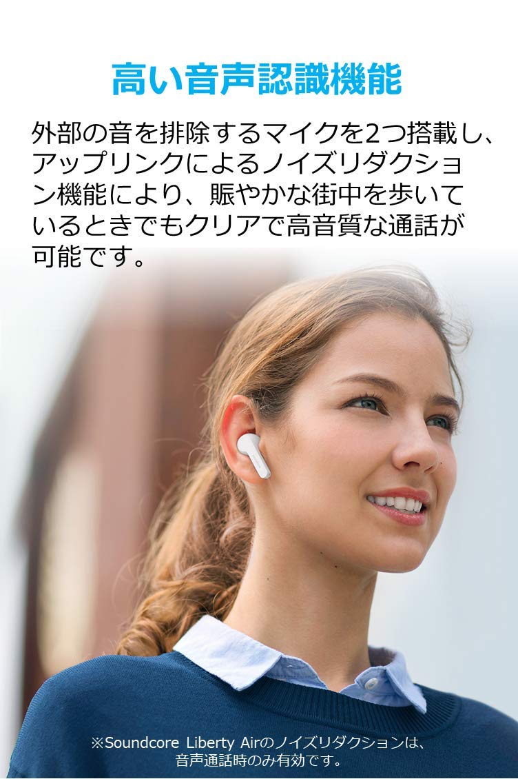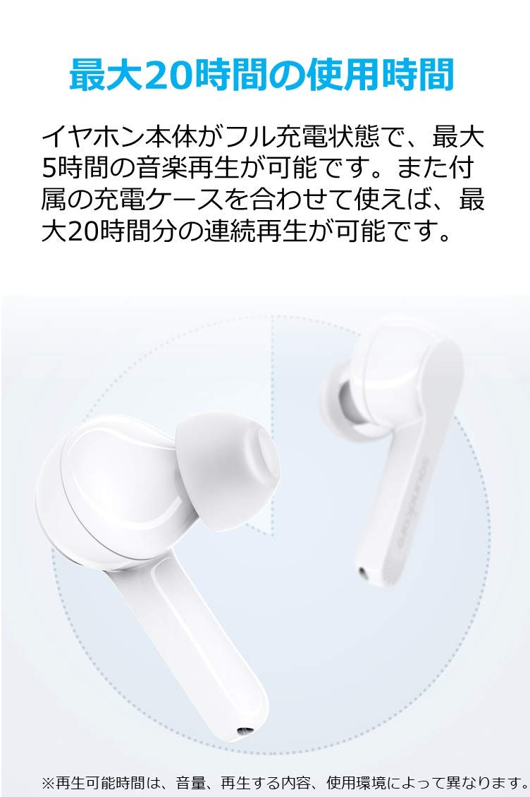 Soundcore Liberty Air(Bluetooth 5.0 完全ワイヤレスイヤホン by Anker)【PSE認証済 / 最大20時間音楽再生 / Siri対応/グラフェン採用ドライバー/マイク内蔵 / IPX5防水規格 】(ホワイト)