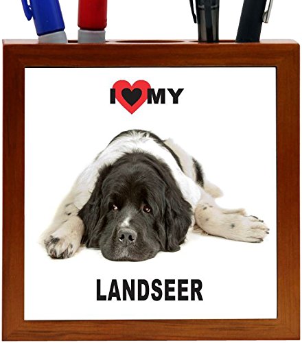 Rikki Knight I Love My Landseer Dog Design 5-Inch Tile Wooden Tile Pen Holder (RK-PH44890)