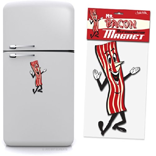 - Much like real bacon, this 15" (38.1 cm) tall Mr. Bacon magnet is quite versatile. Put one on your meat locker as a mascot, or, better yet, put one on each side of your car to turn it into the baconmobile!