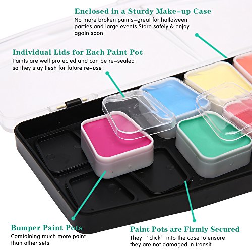 - EASY STORAGE:This face painting palette has a hard case that protects the face paints and can be used to mix colors.each block of color secured inside the box there is no dangling