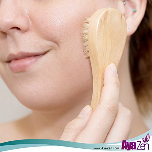 - UPGRADED DRY BRUSH WITH NO PLASTIC-PREMIUM DRY BRUSH MADE WITH THE HIGHEST QUALITY - SET OF TWO BRUSHES - Dry Body Brush with Detachable Handle and Dry Face Brush made with Natural Boar Bristles. 100% boar hair bristles that are firm but soft. Other brushes are too rough for dry brushing, but not the AyaZen brand of bathing and beauty care products!