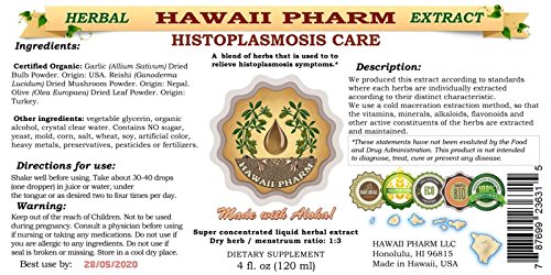 - Feature : Highest Strength, Super concentrated Histoplasmosis care liquid extract! / Histoplasmosis care tincture contains ONLY natural ingredients! / High Quality Histoplasmosis care liquid extract- crude extract of first extraction! We meticulously produce our extracts according to precise standards where each herb is extracted according to the distinct characteristic of each plant! / Super concentrated Histoplasmosis care extract: dry material / menstruum ratio 1:3! / We strictly use only organic or ethically sourced wild harvested material, organic alcohol, vegetable glycerin and crystal clear water! Really the BEST Histoplasmosis care extract on market!