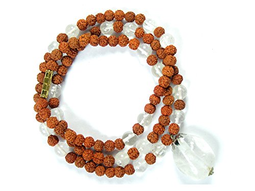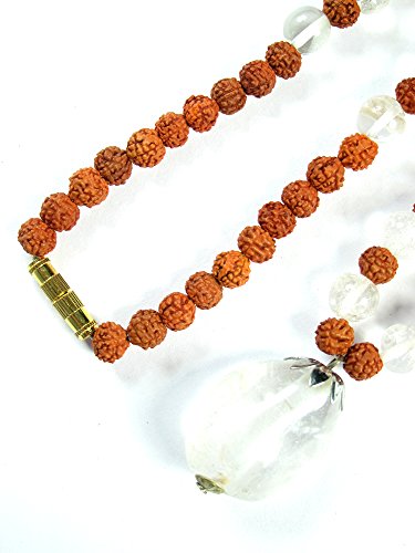 - Feature : Crystal bring strengthen alignment with higher self and Cleanse the mind. / Using a mala made from Crystal aids concentration, cols the body, and calms the mind. Wearing a crystal mals ensures a sound and undisturbed sleep. / Rudraksha seeds are powered with electro-magnetic energy that reverbate with the highest vibrations of Mahadeva Siva himself . Used since ancient time for increasing the spiritual power, self confidence, courage and for building a positive attitude in multidiscipline area. / Even this gem stone destroys and removes all bad effects of ketu in horoscope/ birth chart. / Approxmate Length : 11.5", 6 mm and 7 mm beads Used, 88+1 Rudraksha beads, 20 crystalwith Beautifull yantra pendant in mala.Comes in a red mala bag free of cost.