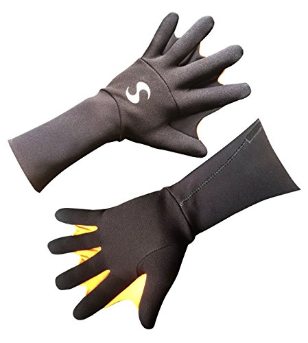 -. Feature : Neoprene Swim Gloves with lengthened cuffs for open water or pool swimming / 2 mm thickness for insulation / Webbing for power and increased propulsion through the water / All seams double stiched, heat taped and vulcanized / Enjoyed by swimmers, divers, surfers and kayakers world wide