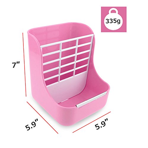 The Uligota hay feeder is aim to creat more convenience and enjoyment for you and your lovely pet.The Hay feeder can provide your small pet with hay, alfalfa and other grasses. ?-Ideal for rabbits, chinchillas, guinea pigs or other small animals ?-Made of Material:Antibacterial ABS material Stainless steel,avoid pet bitting it,durable and last long?-Large combo bin feeder dispenses hay and food without the mess ?-Keep a generous supply of food and hay in a clean, organized bin style feeder Package ?-Color:blue/yellow/pink Caution:the bowl back lock hole diameter approx 0.1 inch ,please check your cage size whether it fits or not 0