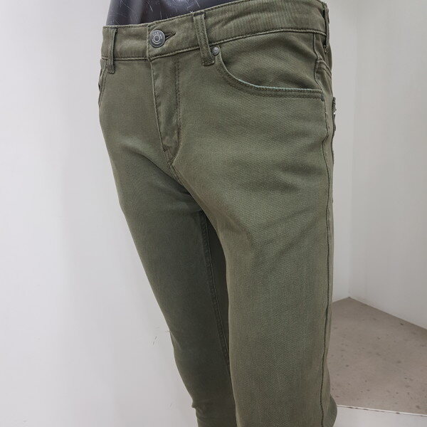 2018년 가을 신상 남성 카키컬러 워싱 스키니핏 데님 팬츠입니다. 스톤워싱으로 입체적인 카키컬러를 연출한 데님으로 밋밋한 면바지 대신 워싱된 컬러팬츠를 찾으시는 고객님들께 적극 추천드립니다.